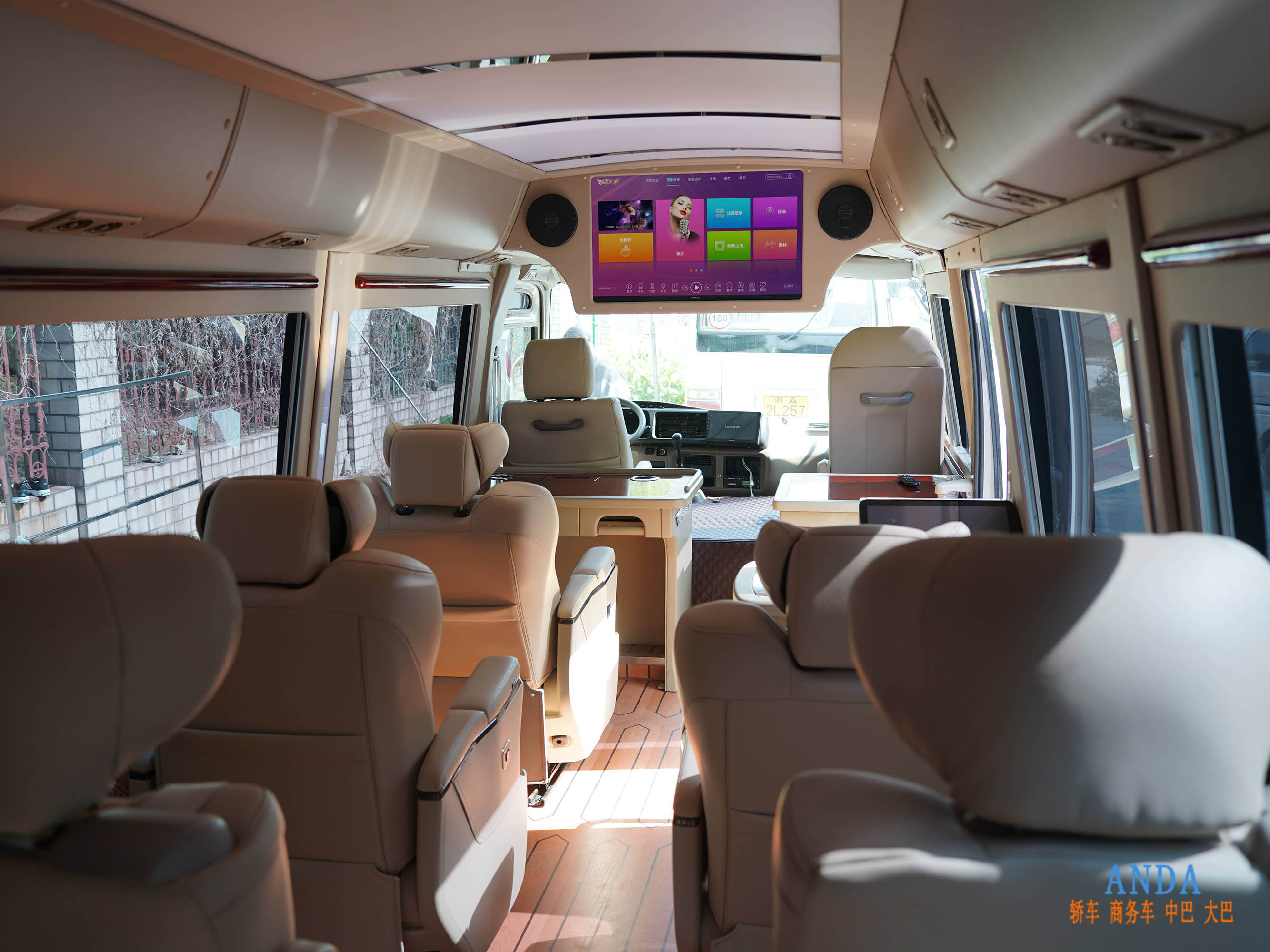 車輛配置風(fēng)冷無(wú)霜超大靜音冰箱、座駕直控區(qū)域空調(diào)、全色域2.5K60HZ超高清智能電視、KTV點(diǎn)歌系統(tǒng)觸摸屏、智能三色無(wú)極變光護(hù)眼幕布式吸頂燈、聯(lián)動(dòng)式燈帶、頭等艙式可旋轉(zhuǎn)36點(diǎn)位按摩座椅、高環(huán)保級(jí)愛(ài)格實(shí)木地板、電動(dòng)升降隱私窗簾,另有配置長(zhǎng)柄抗風(fēng)雨傘、48V插座、安卓蘋(píng)果充電器、綠聯(lián)快充充電線、3.1HDMI數(shù)據(jù)線、3.1USB延長(zhǎng)線以及話筒等物品可免費(fèi)使用。全車共15個(gè)座位,乘客座位為13個(gè),可出省旅游用車、上海市內(nèi)包車、機(jī)場(chǎng)接送給等。
